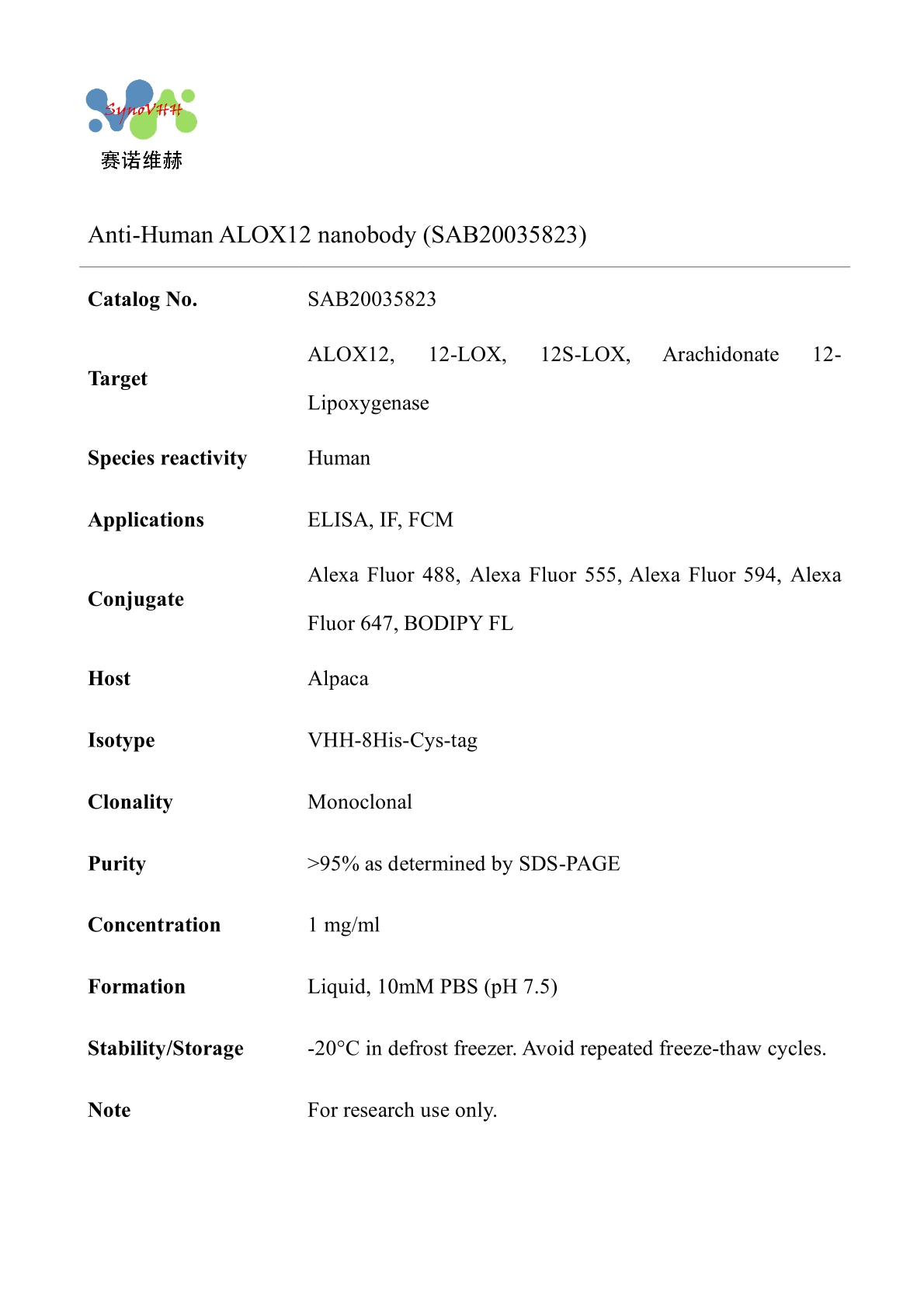Anti-Human ALOX12 nanobody (SAB20035823)