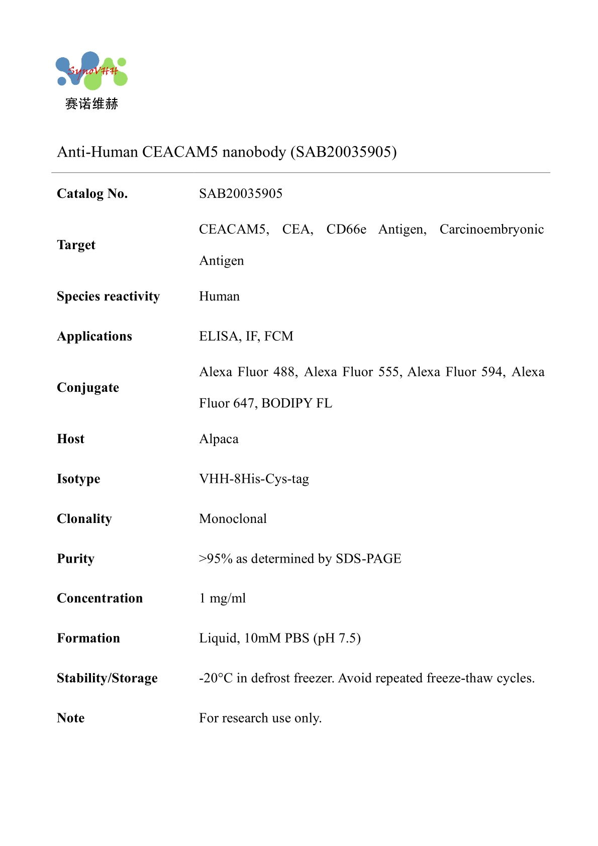 Anti-Human CEACAM5 nanobody (SAB20035905)