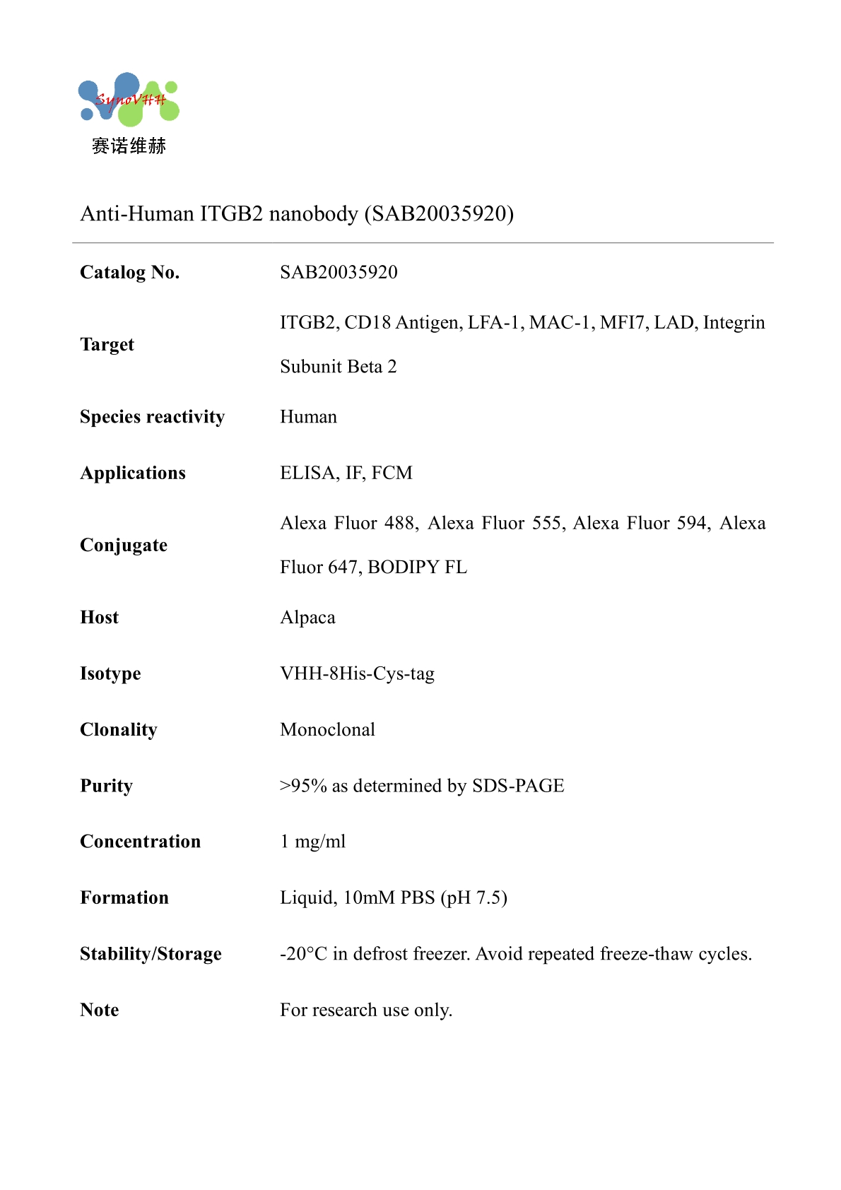 Anti-Human ITGB2 nanobody (SAB20035920)