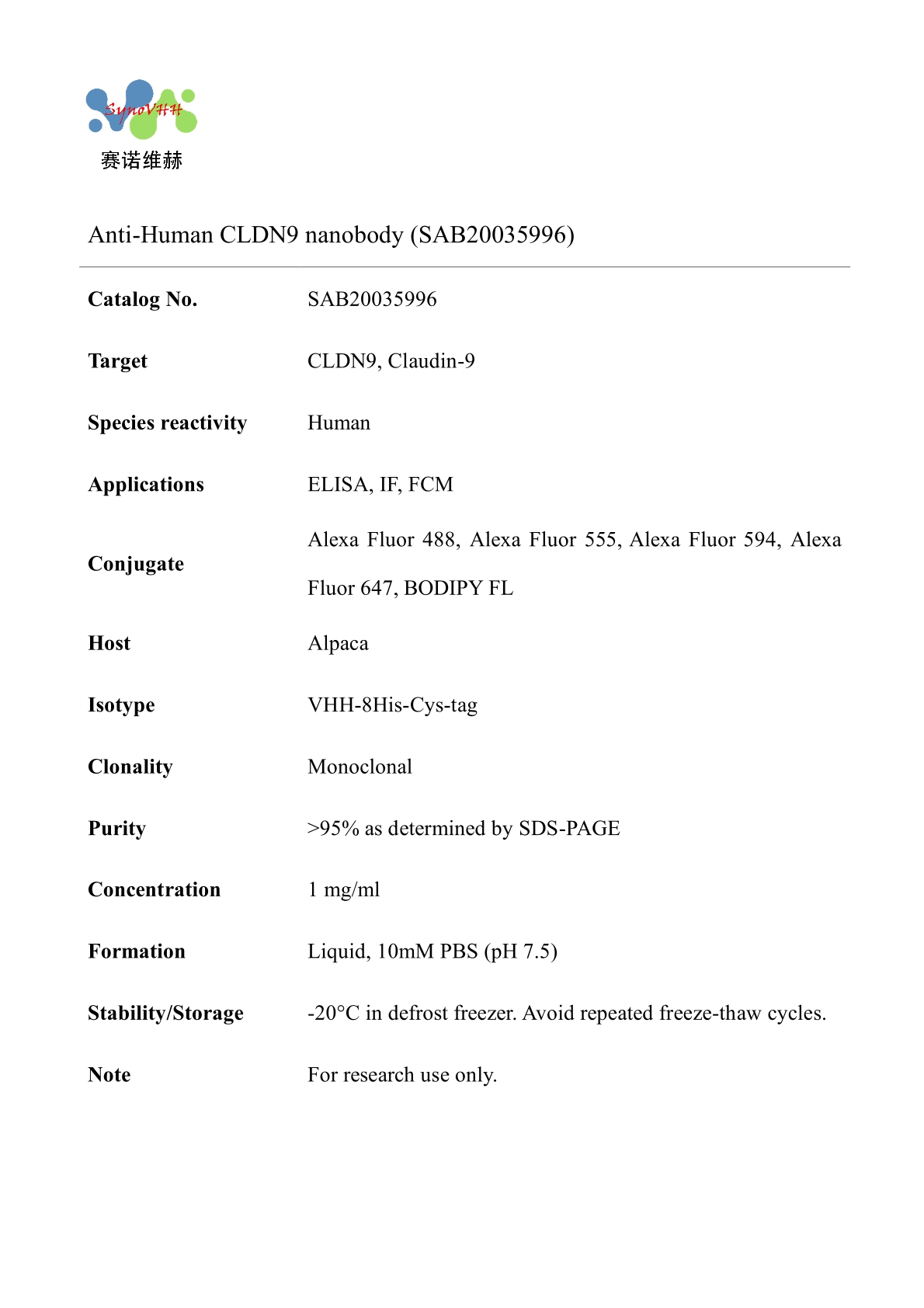 Anti-Human CLDN9 nanobody (SAB20035996)
