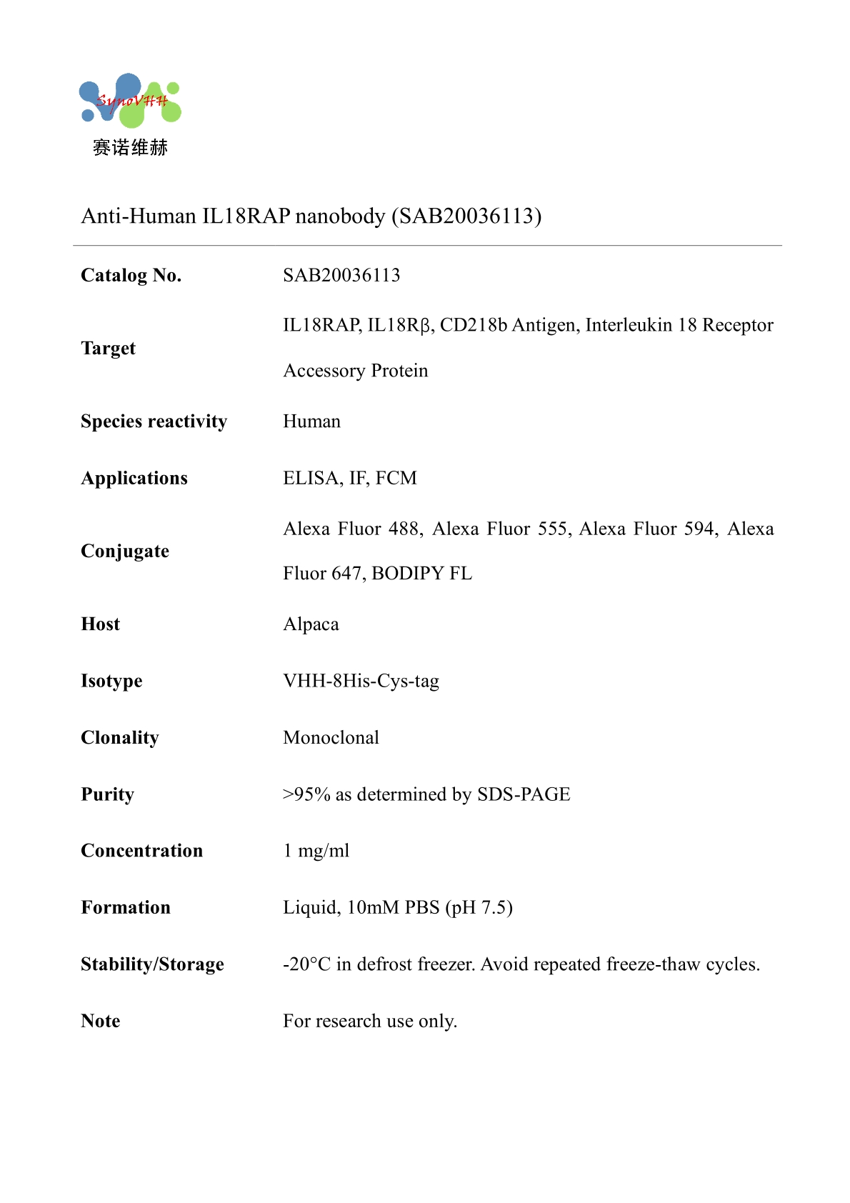 Anti-Human IL18RAP nanobody (SAB20036113)
