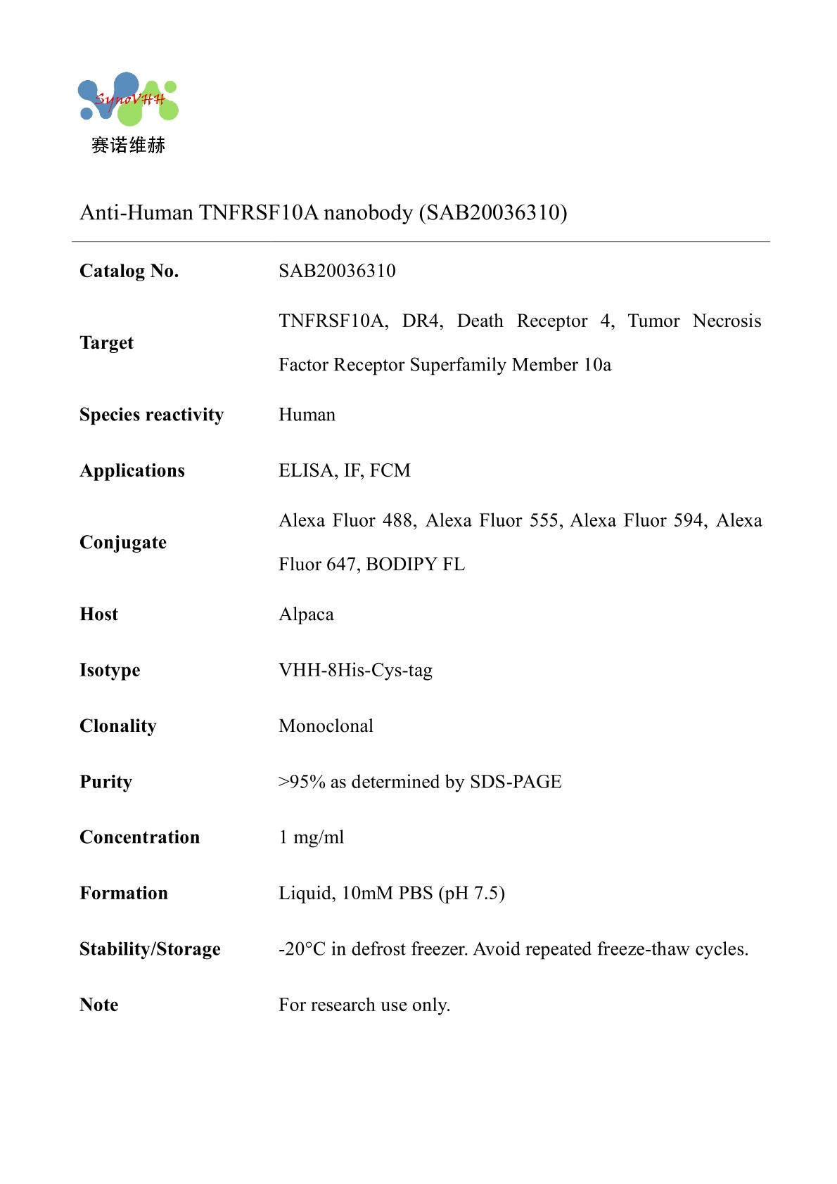 Anti-Human TNFRSF10A nanobody (SAB20036310)
