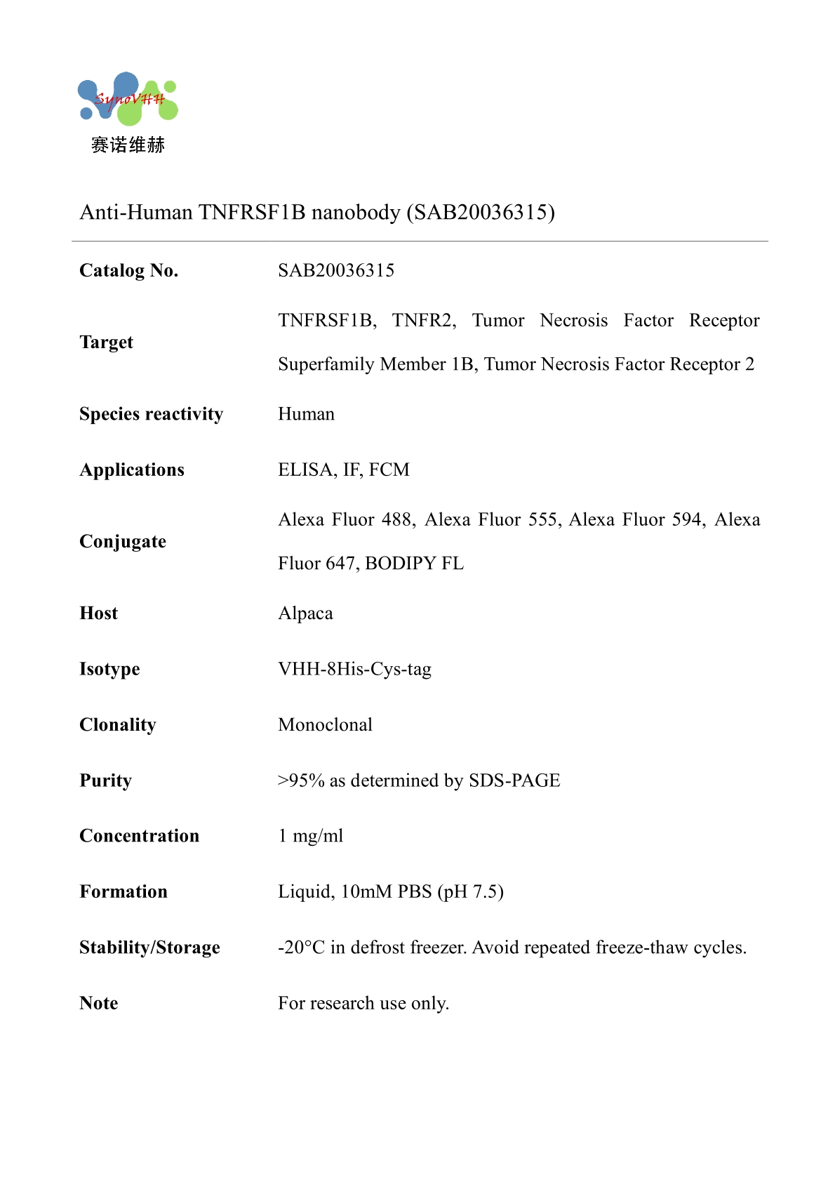 Anti-Human TNFRSF1B nanobody (SAB20036315)