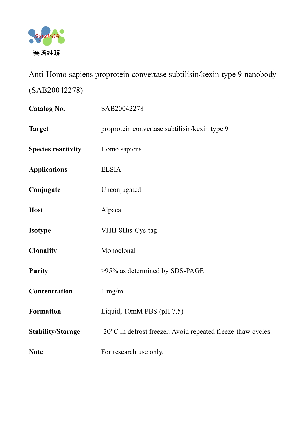Anti-Homo sapiens proprotein convertase subtilisin/kexin type 9 nanobody (SAB20042278)