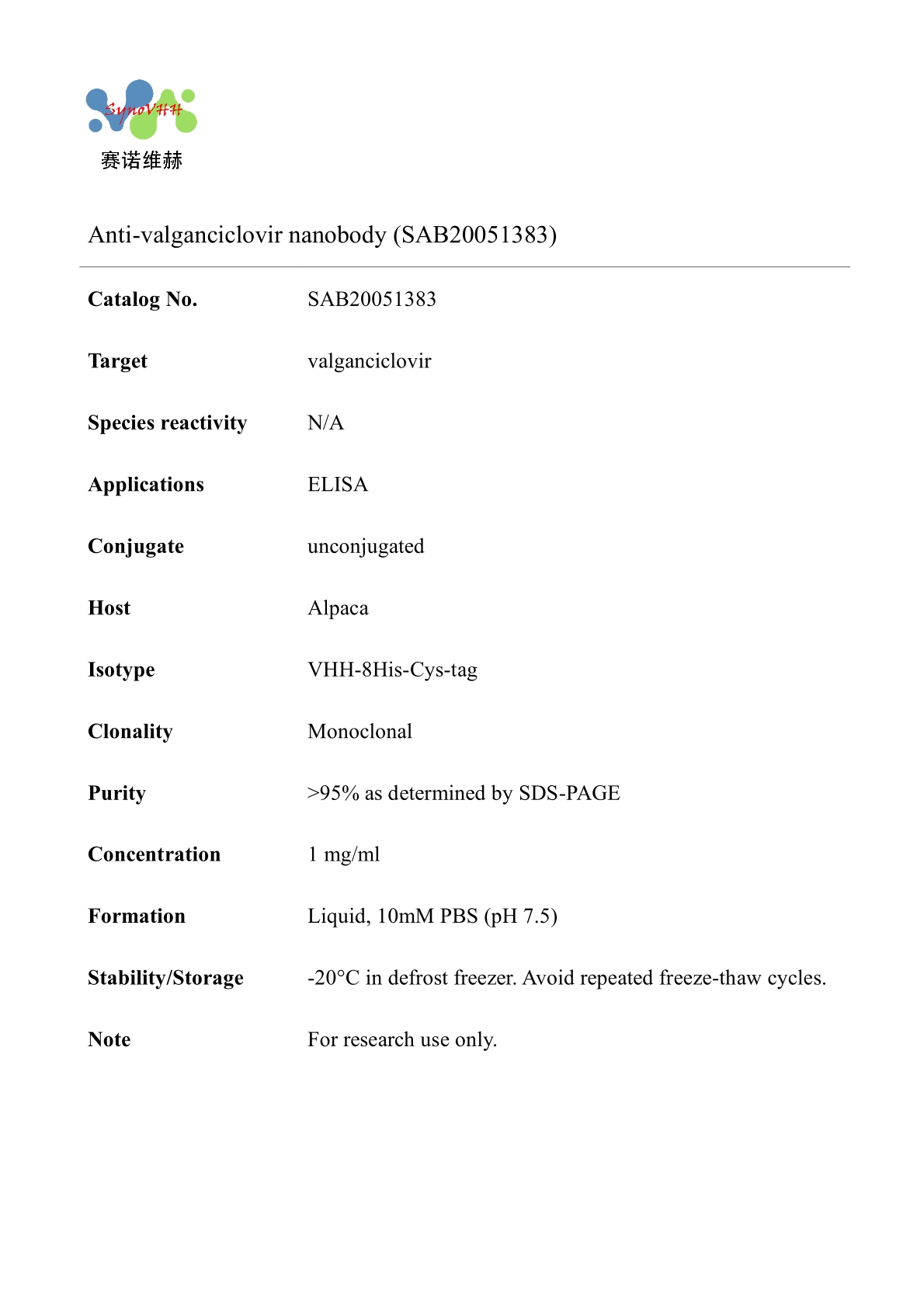 Anti-valganciclovir nanobody (SAB20051383)