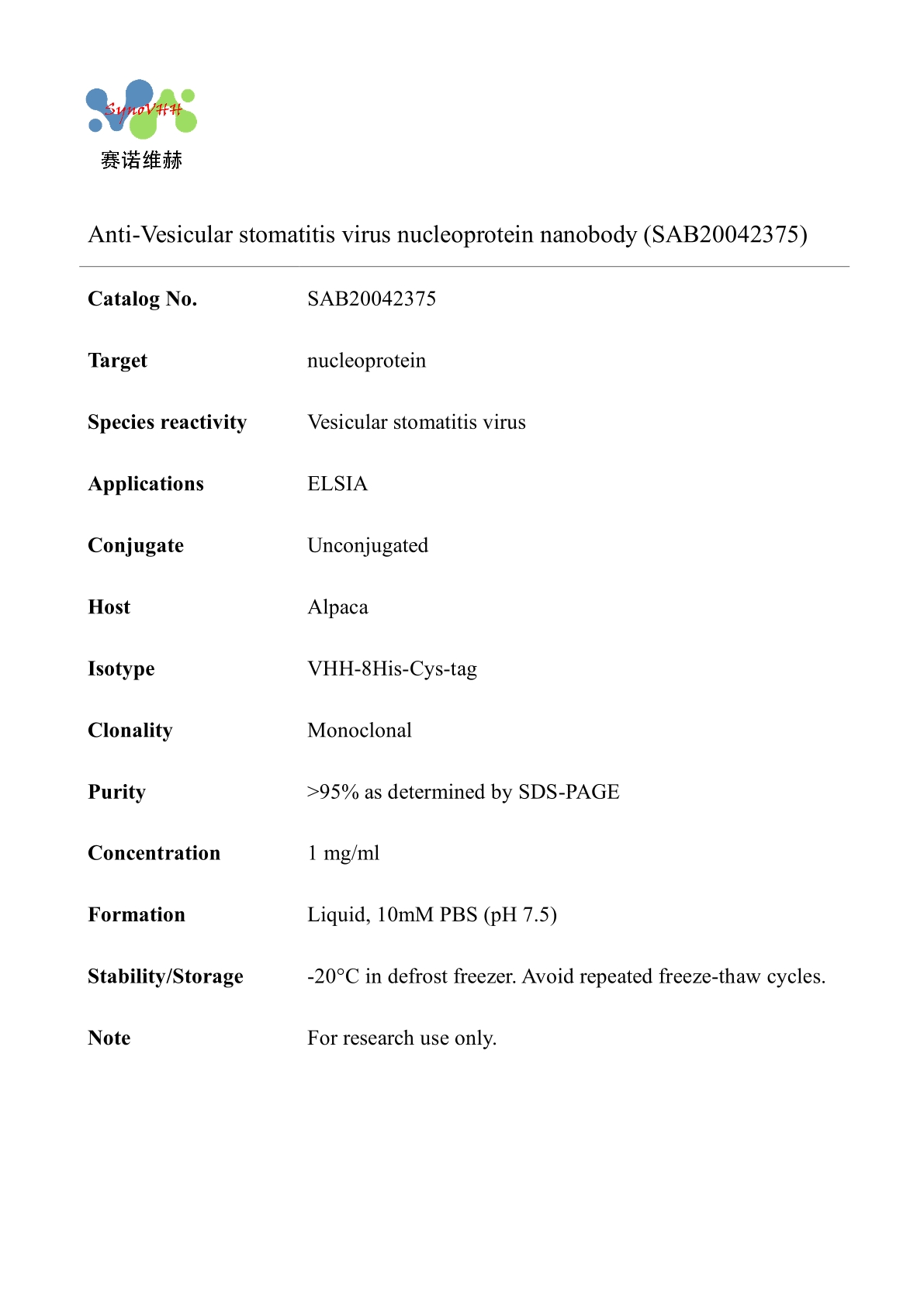 Anti-Vesicular stomatitis virus nucleoprotein nanobody (SAB20042375)