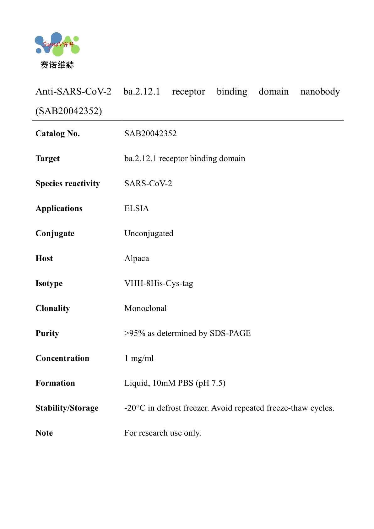 Anti-SARS-CoV-2 ba.2.12.1 receptor binding domain nanobody (SAB20042352)