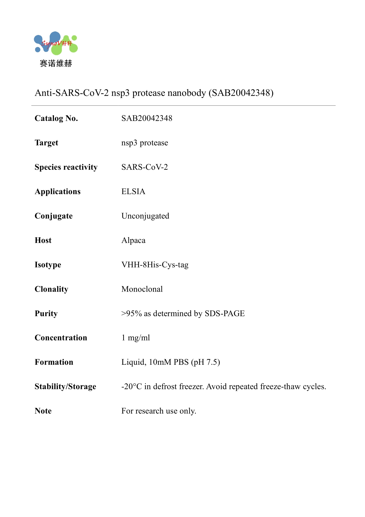 Anti-SARS-CoV-2 nsp3 protease nanobody (SAB20042348)