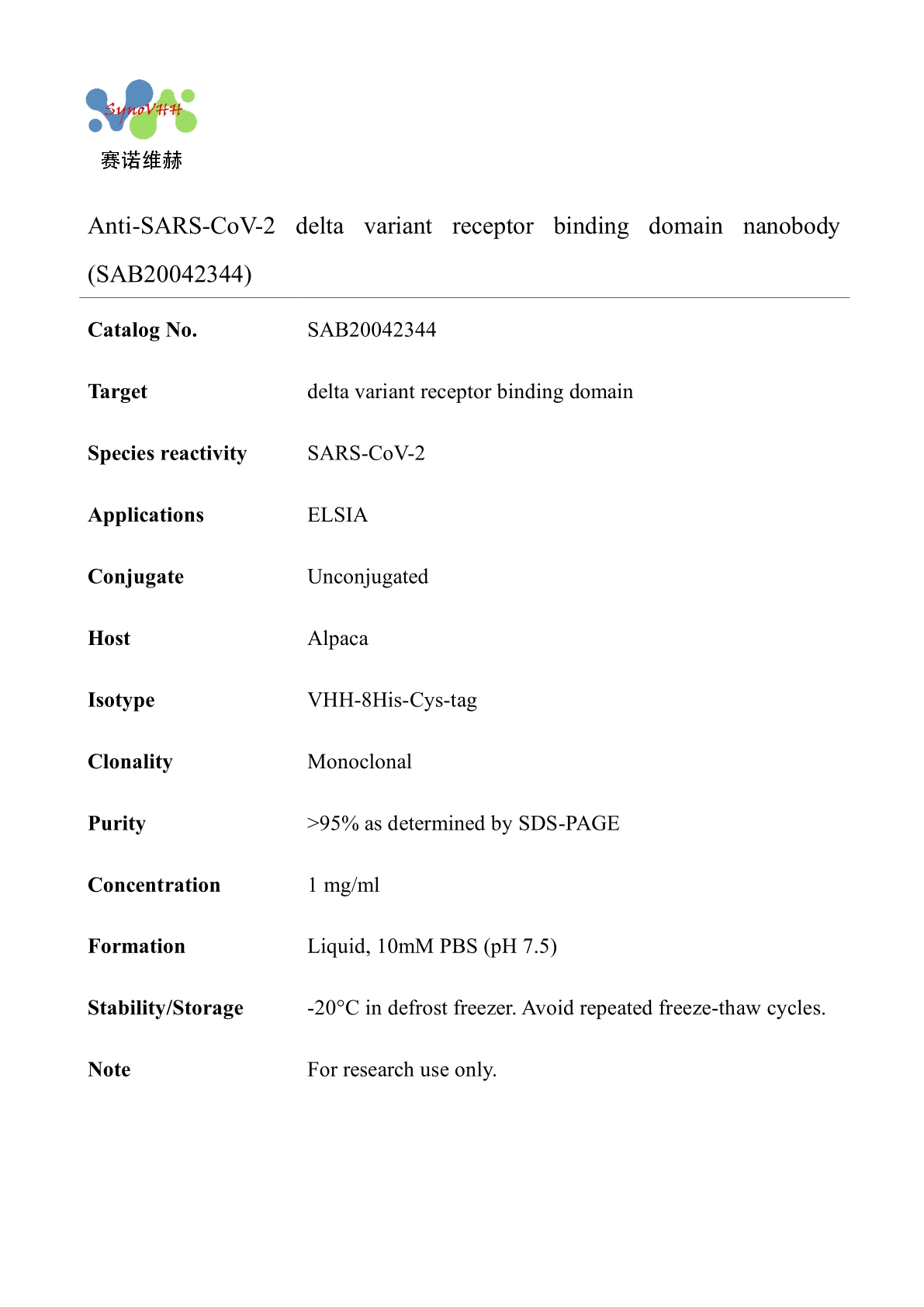 Anti-SARS-CoV-2 delta variant receptor binding domain nanobody (SAB20042344)