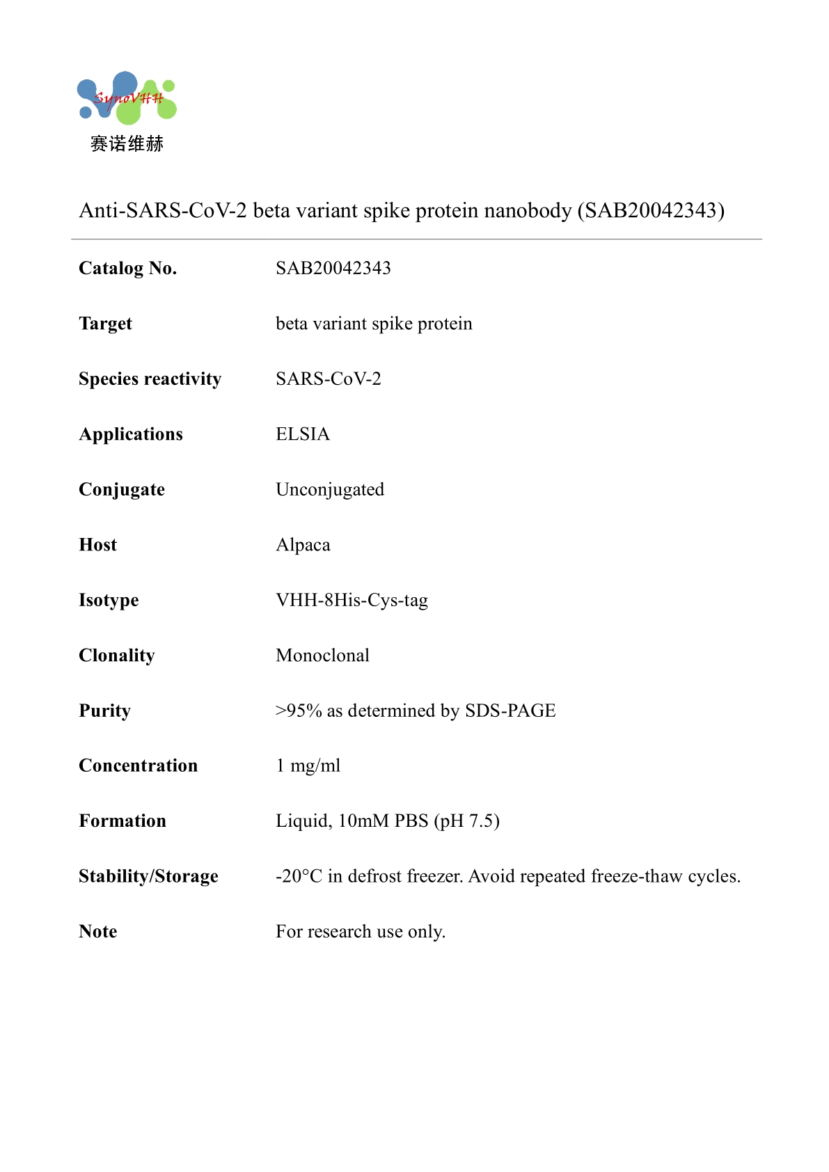 Anti-SARS-CoV-2 beta variant spike protein nanobody (SAB20042343)