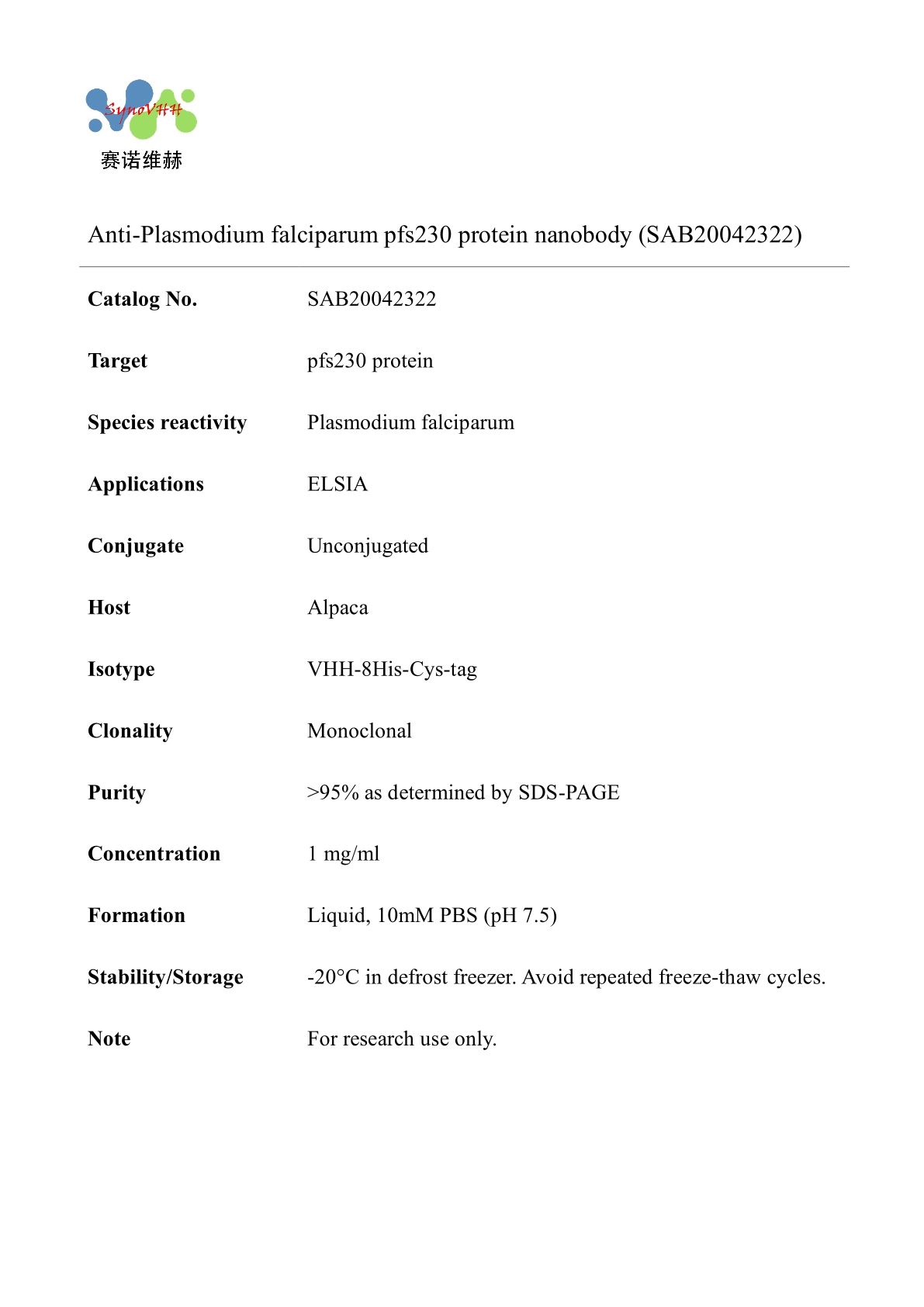 Anti-Plasmodium falciparum pfs230 protein nanobody (SAB20042322)