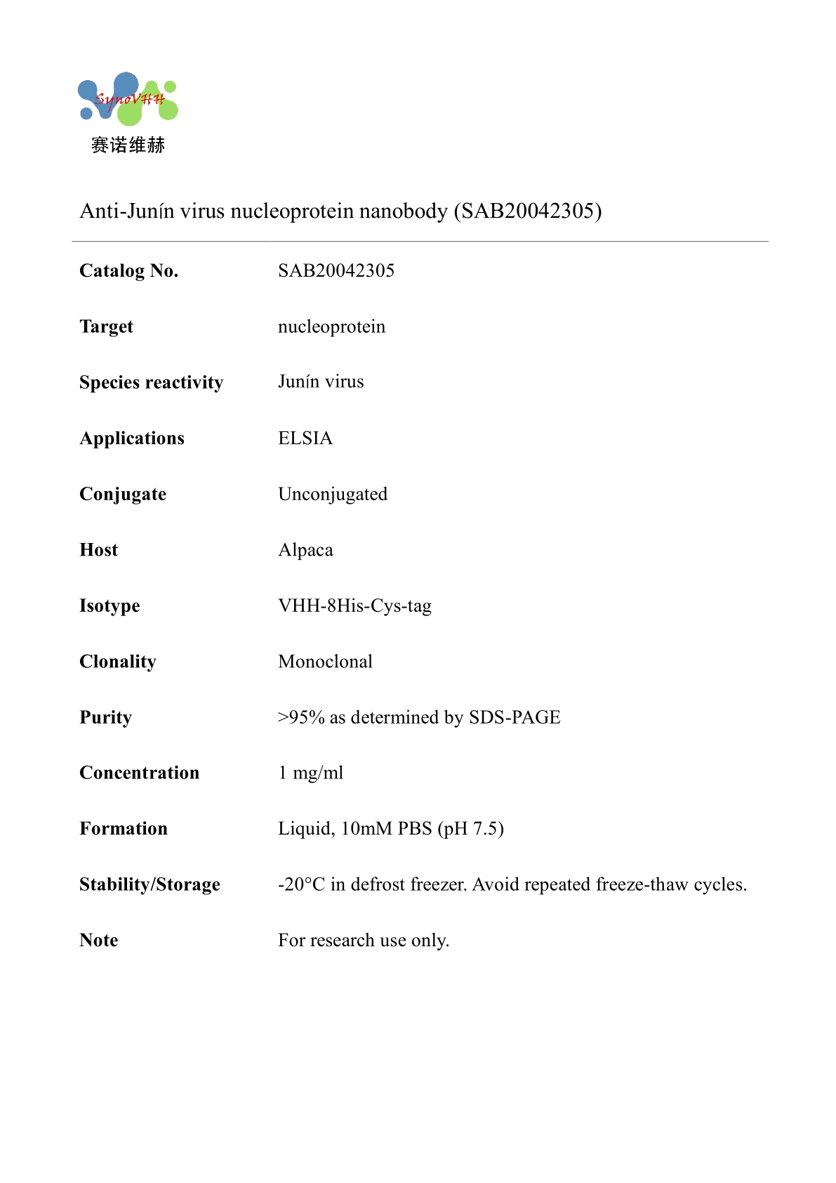 Anti-Junín virus nucleoprotein nanobody (SAB20042305)