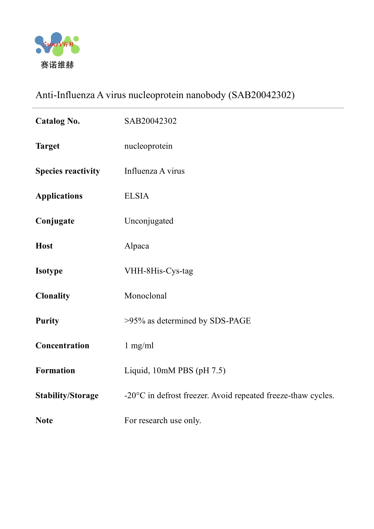 Anti-Influenza A virus nucleoprotein nanobody (SAB20042302)