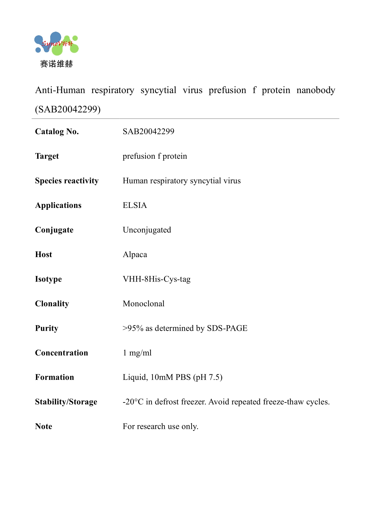 Anti-Human respiratory syncytial virus prefusion f protein nanobody (SAB20042299)