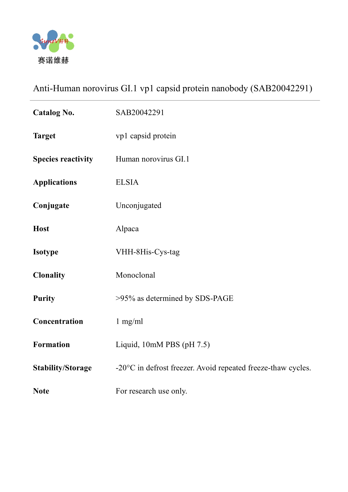 Anti-Human norovirus GI.1 vp1 capsid protein nanobody (SAB20042291)