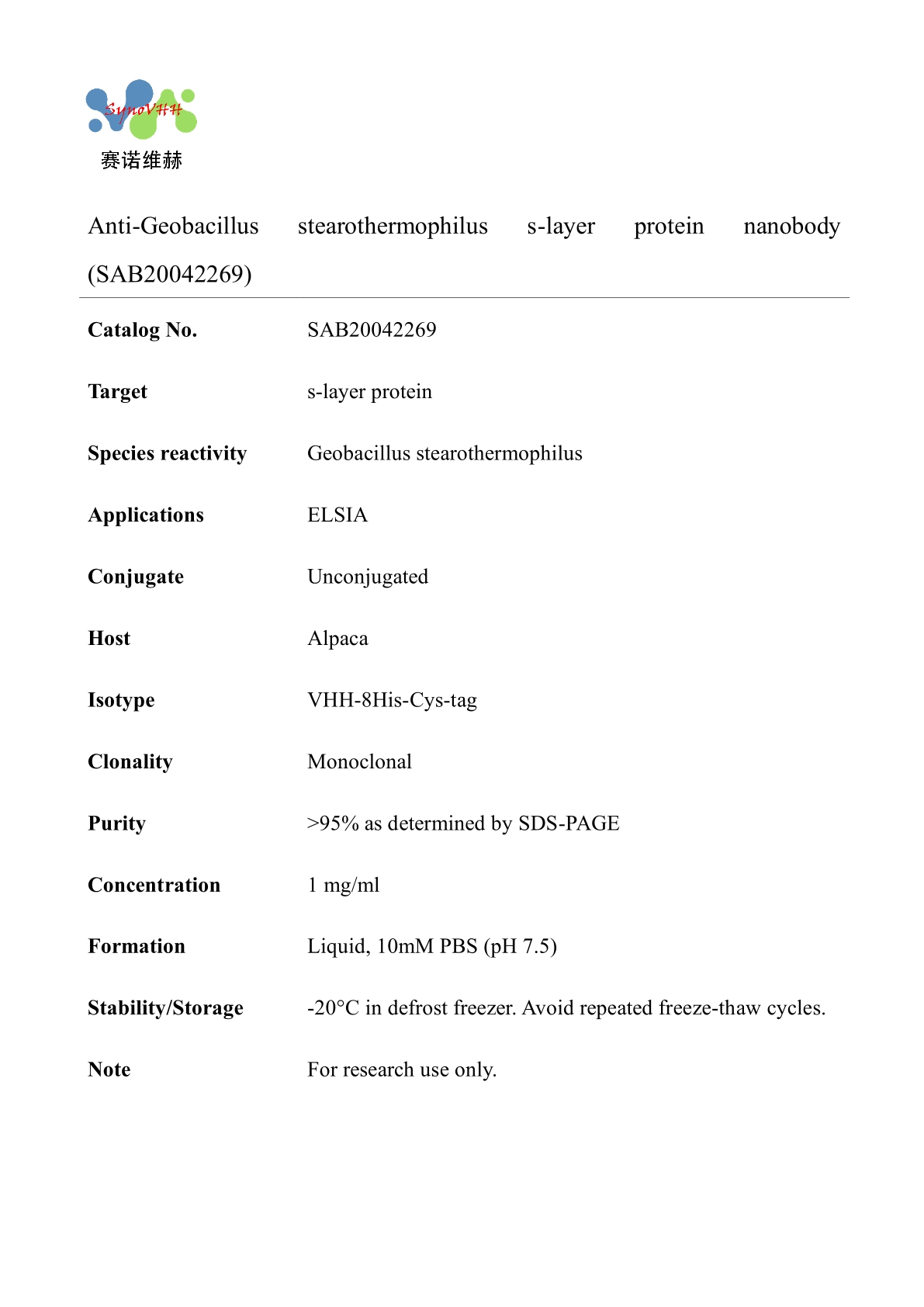 Anti-Geobacillus stearothermophilus s-layer protein nanobody (SAB20042269)