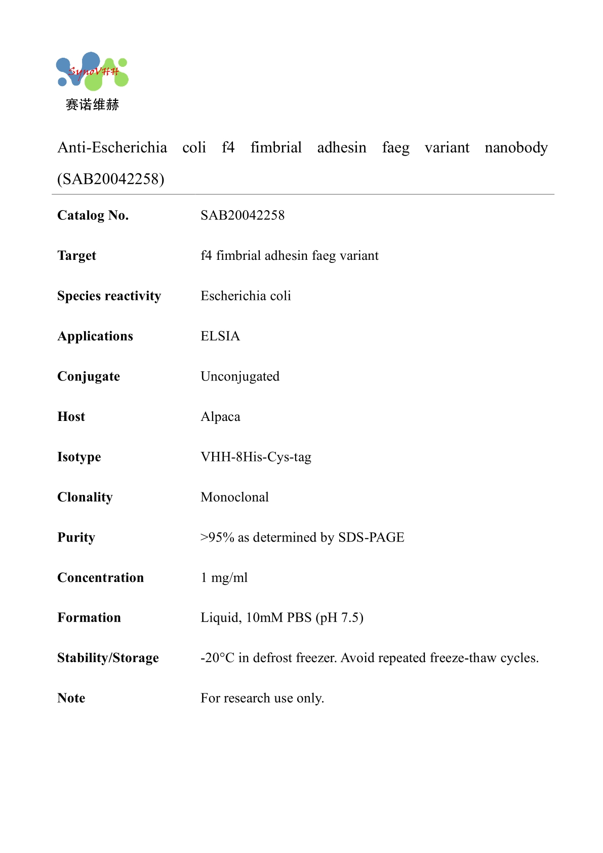 Anti-Escherichia coli f4 fimbrial adhesin faeg variant nanobody (SAB20042258)