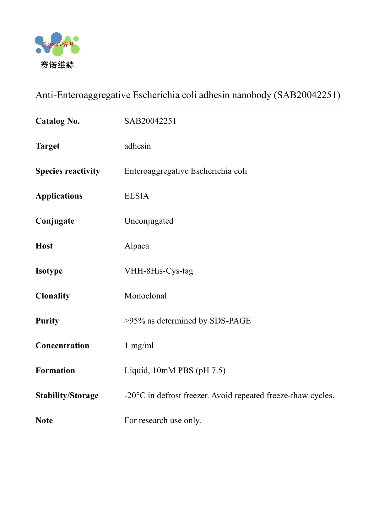 Anti-Enteroaggregative Escherichia coli adhesin nanobody (SAB20042251)