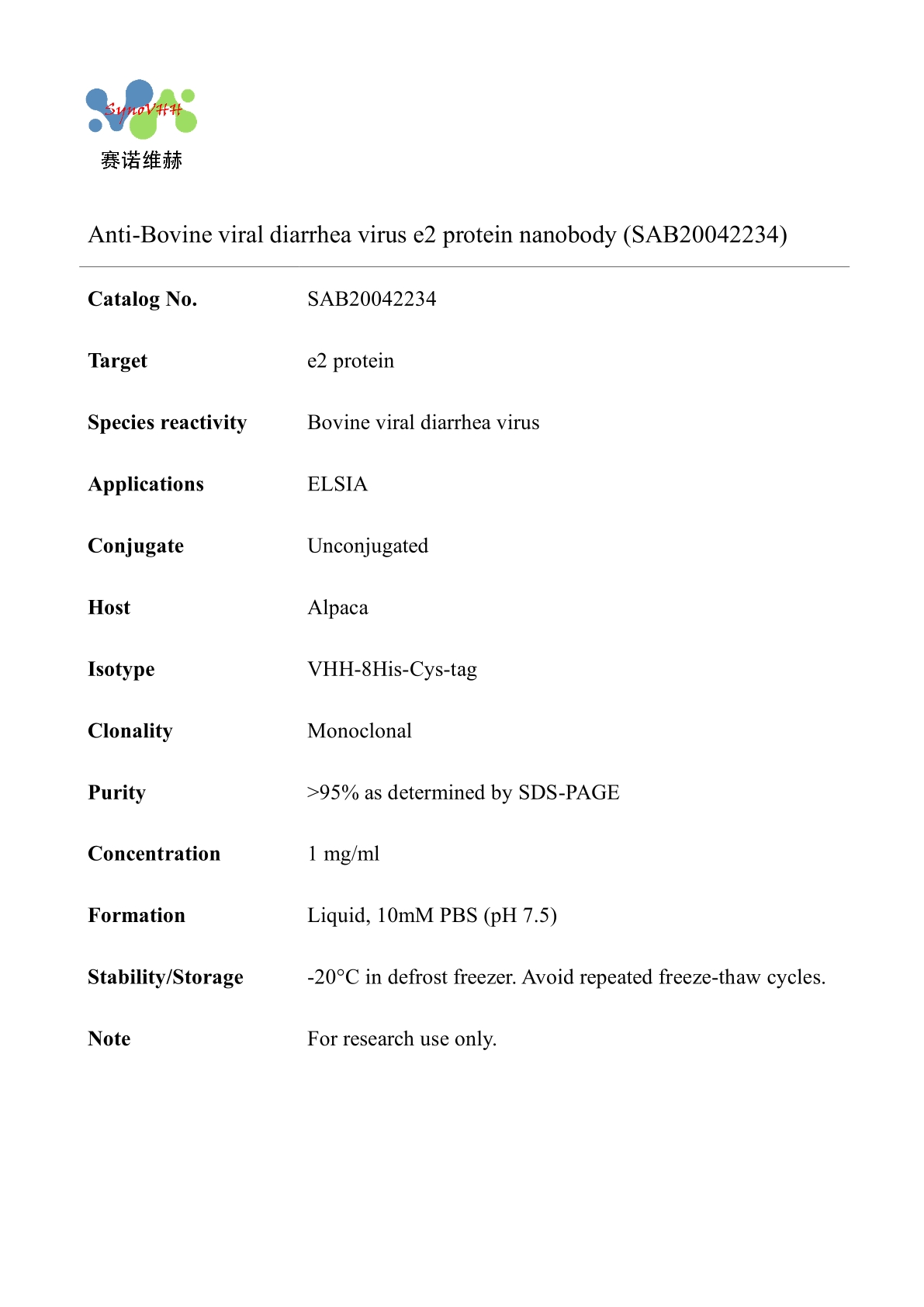Anti-Bovine viral diarrhea virus e2 protein nanobody (SAB20042234)