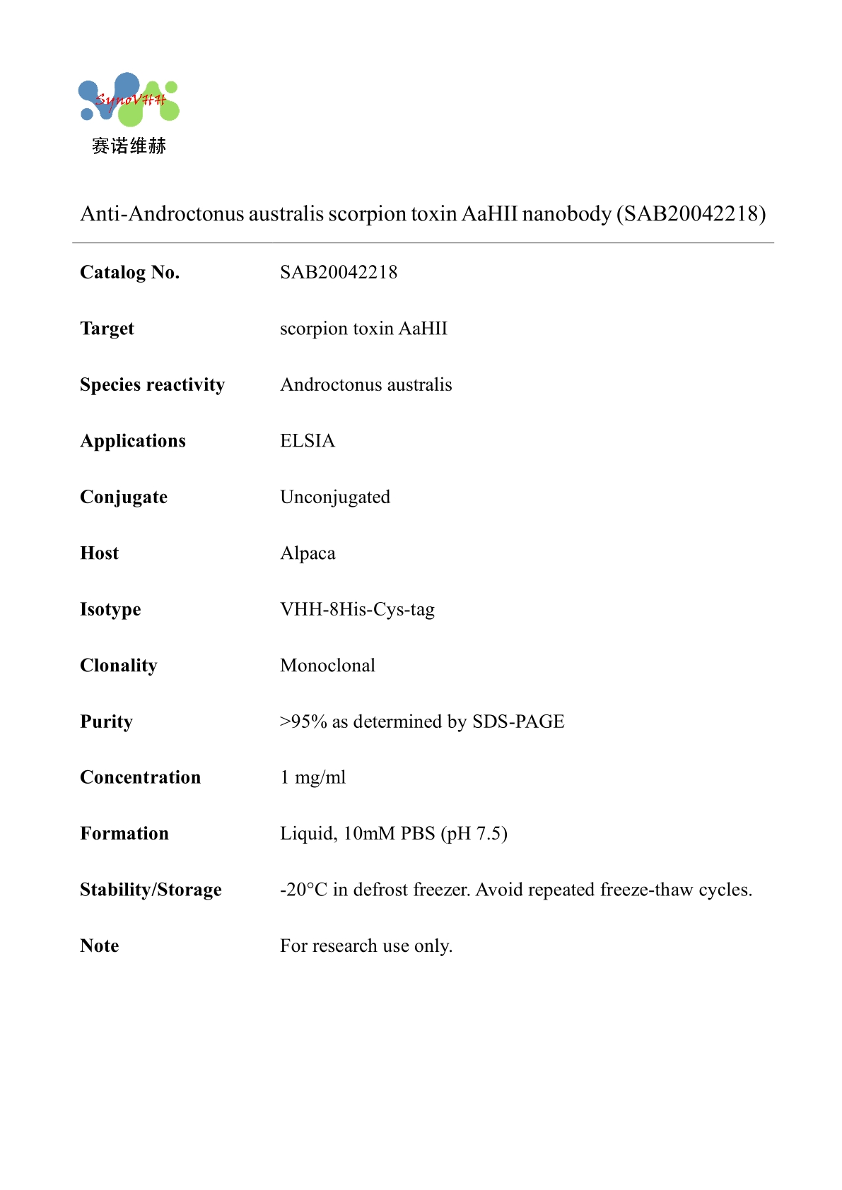 Anti-Androctonus australis scorpion toxin AaHII nanobody (SAB20042218)